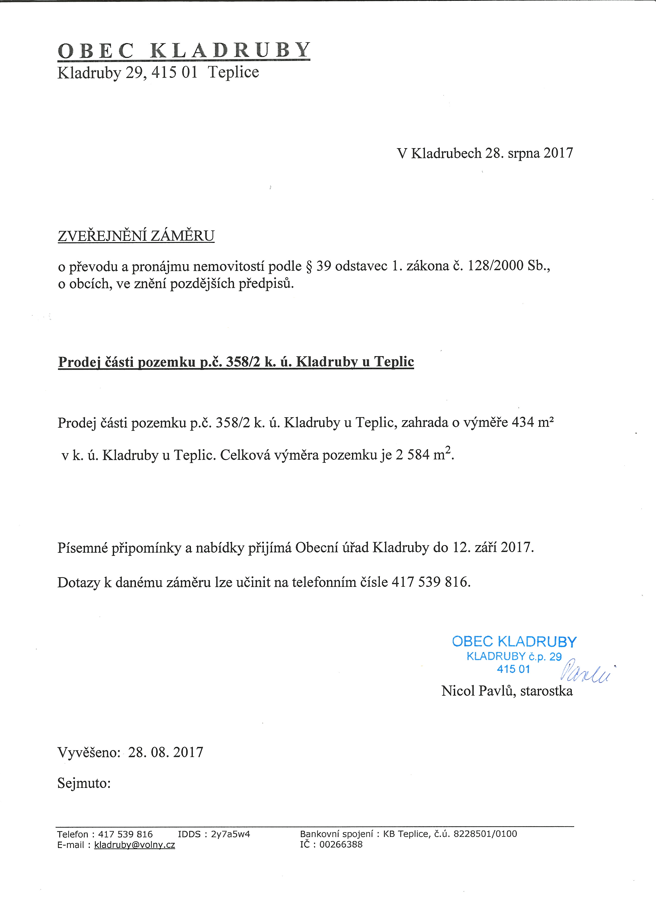 Část pozemku p.č. 358/2 k. ú. Kladruby u Teplic