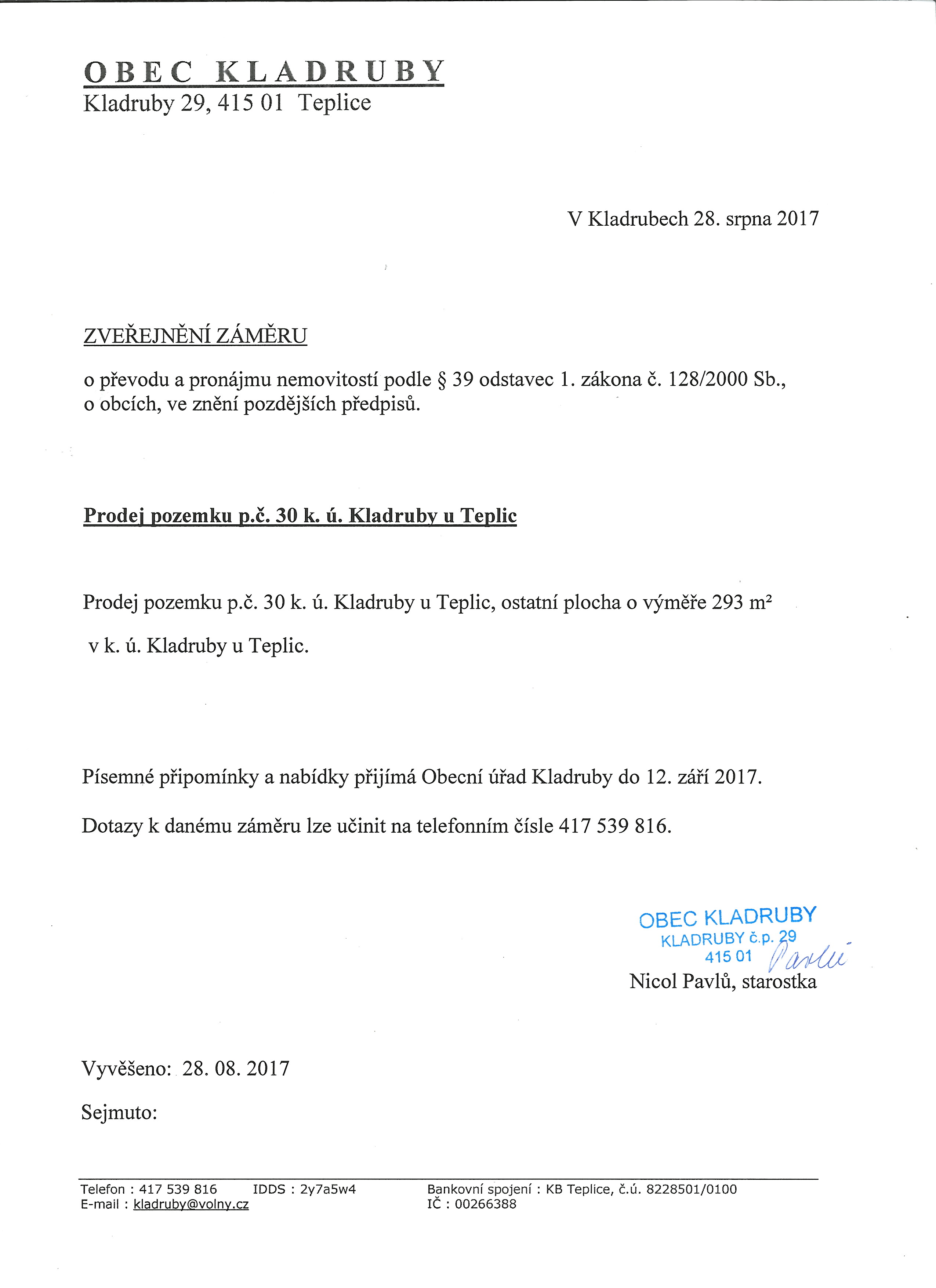Zveřejnění záměru prodeje