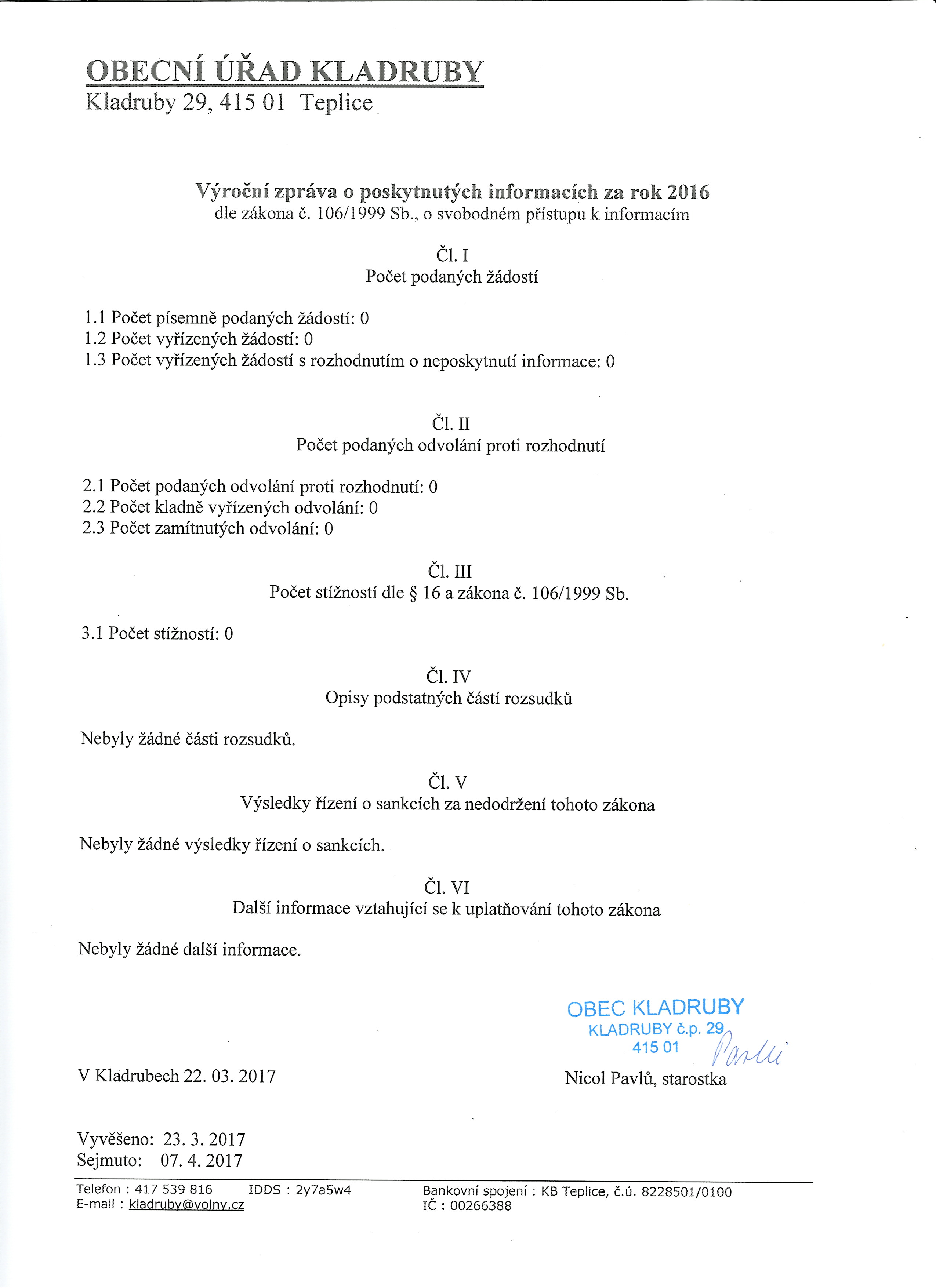 Výroční zpráva za rok 2016